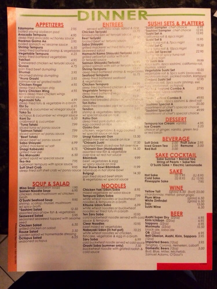 O’Sushi Japanese Restaurant Menu (Update 2025)