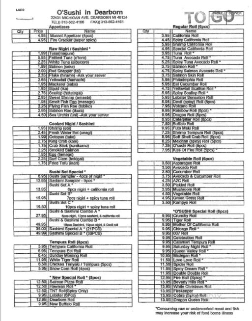 Welcome to O’Sushi Japanese Restaurant, a delightful culinary gem nestled in Dearborn, MI. This authentic Japanese eatery offers a diverse menu that caters to sushi lovers and casual diners alike. At O’Sushi, you can indulge in a variety of sushi sets, from the exquisite Sushi Sampler to the robust Sushi & Sashimi Combo, ensuring a taste experience that's both fresh and satisfying.